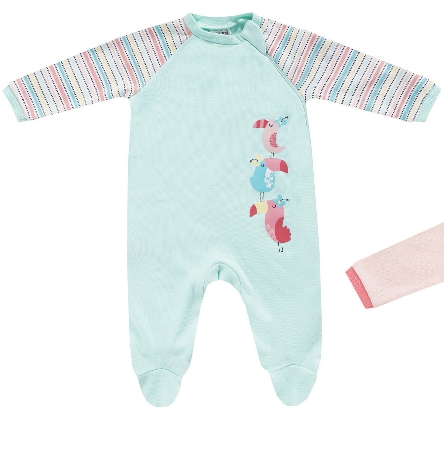 Krásný dívčí overálek z vysoce kvalitní bavlny. Příjemná světle tyrkysová barva s potiskem ptáčků. Praktické a rychlé zapínání na zip s bezpečnostním krytím.