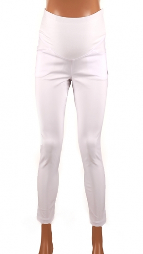 Úzké bílé těhotenské kalhoty pro milovnice této barvy, nebo třeba pro lékařky, zdr. sestry apod. Díky měkkému pásu přes břicho se přizpůsobí měnící se postavě až do porodu. Na konci pásu je děrovaná gumová páska, kterou můžete během těhotenství utahovat i povolovat podle potřeby.
